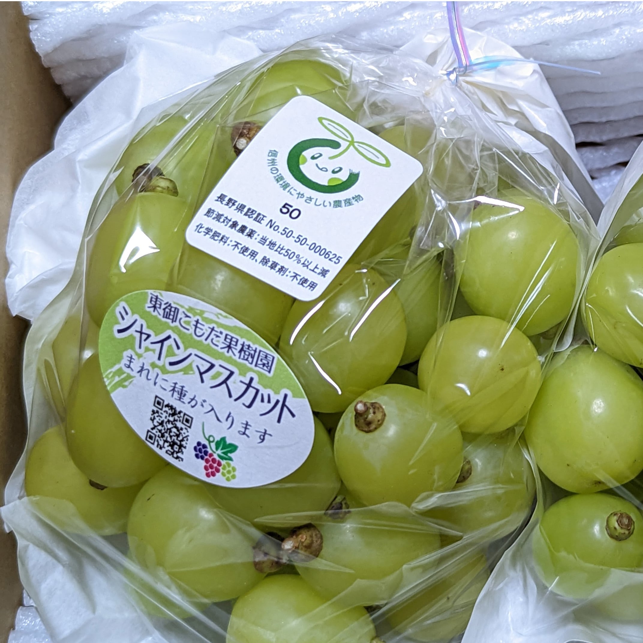 当園のぶどうは全て、信州の環境にやさしい農産物(長野県認証)において